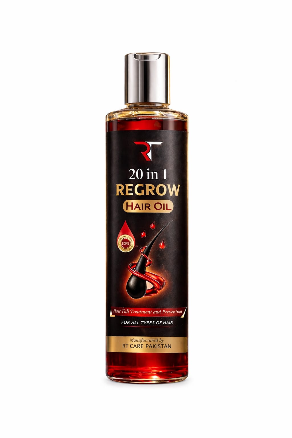 Discover the power of nature with 20 in 1 Regrow Hair Oil by RT / Herbal Care, a completely natural and organic herbal formula designed to improve overall hair health and solve multiple hair problems in one solution.